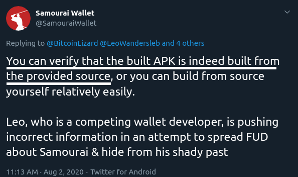 Please help us spread the word, asking Samourai Wallet to support reproducible builds via their Twitter!